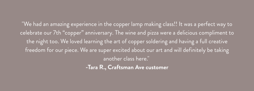 We offer a variety of projects to match the traditional materials for each anniversary year. For example, you can create a wooden cutting board for your 5th anniversary or a copper lamp for your 7th. Our team will help guide you in making something meaningful for your special year.